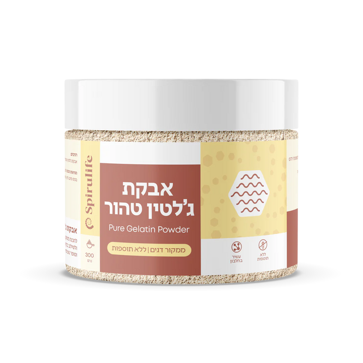 الجيلاتين هو بروتين نقي يُستخلص من عظام الأسماك (وفي حالتنا – من سمك البلطي الحلال). يتحول إلى نسيج بروتيني يمر بعملية تحلل مائي (هيدرولיזה) حيث يتفاعل الكولاجين الموجود في الجيلاتين مع الماء.